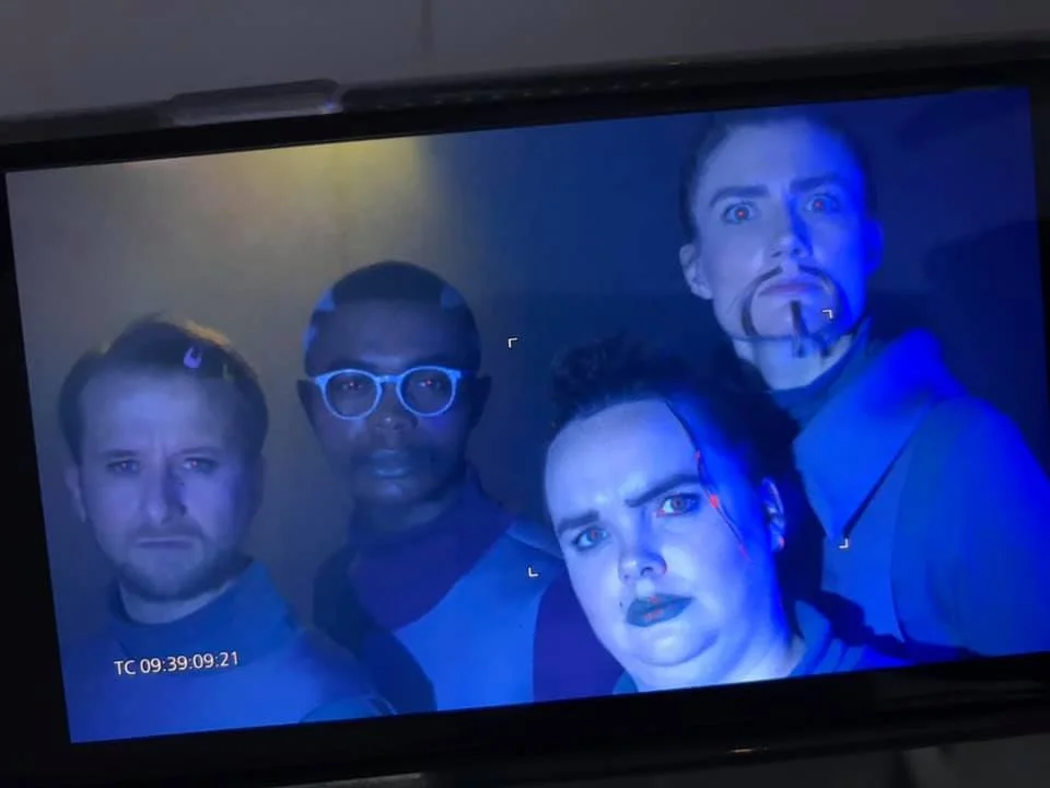Vi var så heldige at vi fikk låne et stort lokale av Brække Eiendom midt i Drammen. Der flytta vi inn i to dager for å forberede alt, og gjøre det om til et romskip. Så spilte vi inn musikkvideoen med alle skuespillerne fra Månelandslaget på to dager. Tusen takk til Viken fylkeskommune for at vi kunne omdisponere sommerteatermidlene til å skape musikkvideoen!